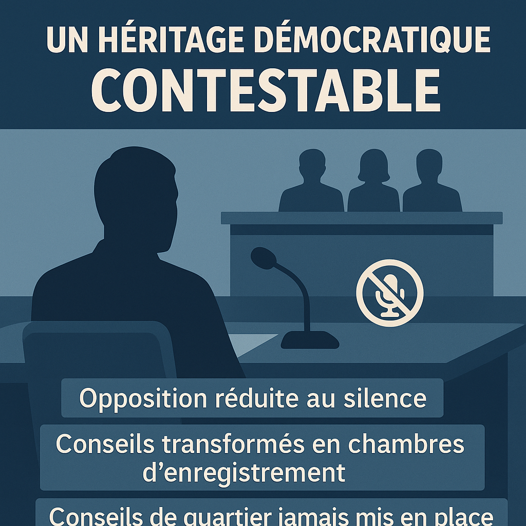 - Des conseils de quartier jamais mis en place, malgré les promesses répétées.