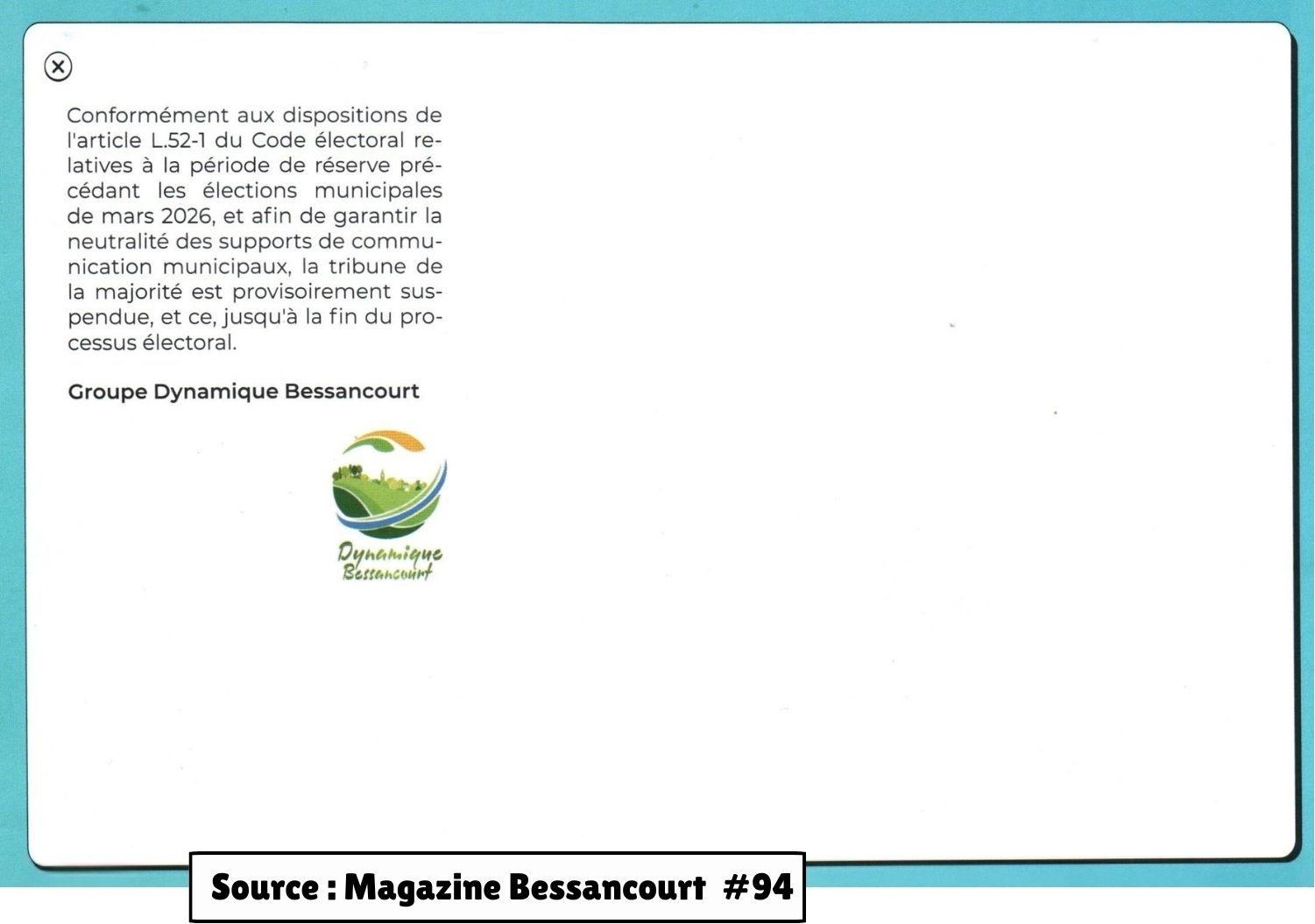 Nous prenons acte de la décision de la majorité municipale de suspendre sa tribune dans le bulletin municipal, en invoquant l’article L.52-1 du Code électoral.